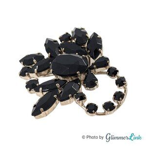 Vintage RARE Western Germany Black Rhinestones Floral Spray Silver Tone Mid Cent