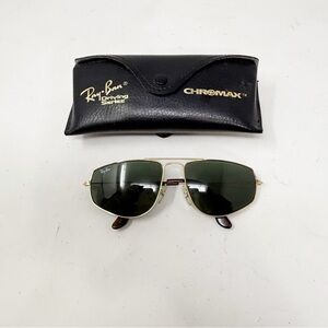 Vintage RAY BAN Chromax Bausch & Lomb W1083 XQAR Gold Aviator Sunglasses + Case. One scratch on right lens. See photos.