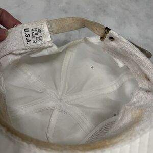 Condition: In very good condition overall, with mild staining on the strap and rust staining under the metal strap fastener. Additionally, there is a small stain on the bill of the cap. (See photos)