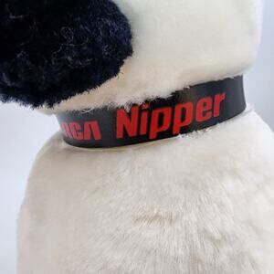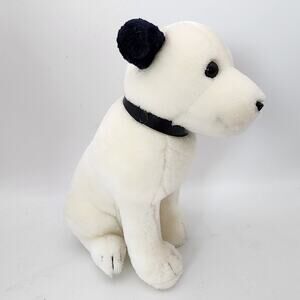 Vintage RCA Nipper Dog Plush 11" White Fur Tilted Head Dakin 1980 Stuffed Animal