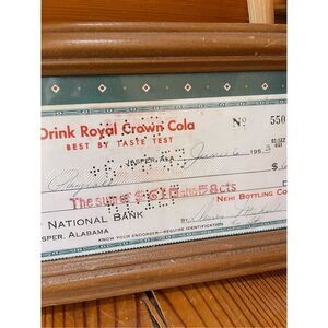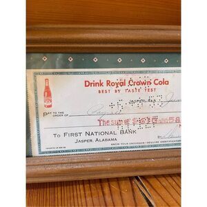 Vintage RC Cola Vendor Check Framed 1950's