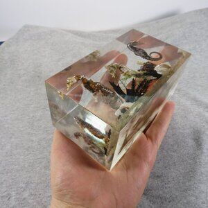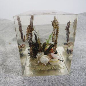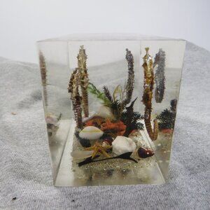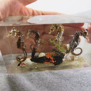 Vintage REAL Sea Horse Acrylic Block 3" tall 5.25x2.25"