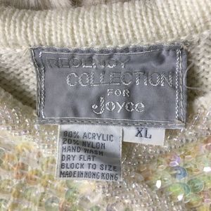 This vintage sweater by Regency Collection for Joyce is absolutely stunning! it has a band around the bottom and the sleeves for a comfortable fit and beautiful sequin detail around the neckline.