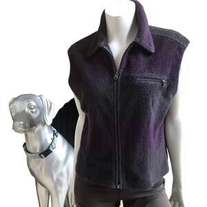Vintage REI Full Zip Fleece Gray Purple Vest Zipped Pocket Women's Size Large