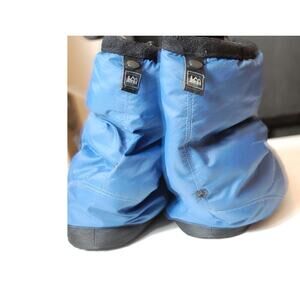 Experience cozy comfort with these Vintage REI Insulated Puffy Slippers in size Medium. Perfect for outdoor adventures or lounging at home, these blue slippers offer excellent insulation and warmth, making them ideal for camping and other outdoor activities. Enjoy the classic REI quality and design in these must-have puffy slippers.