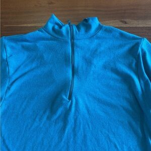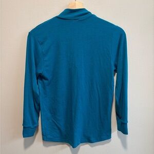 Vintage REI Quarter-Zip Pullover. A rare find! This teal pullover is great for layering or for a lighter outer cover. 92% polyester and 8% Lycra for superior strength and stretch. Made in the USA!