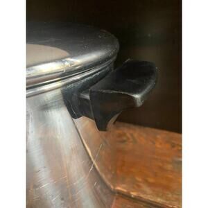 Vintage REVERE WARE 8qt Copper Clad Stockpot w/Lid. Featuring a snug fitting lid, sturdy double handles and a vibrant copper bottom. This vintage pot has minor build up, lightly faded lid knob and rust on handle screws. Even with these imperfections this pot can still perform and is perfect when preparing for large gatherings.