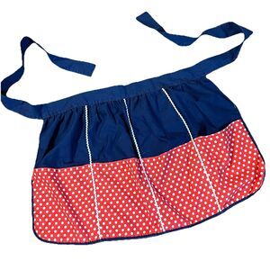 Vintage REVERSIBLE Half Apron Red White Blue Polka Dot Floral Cotton 59"