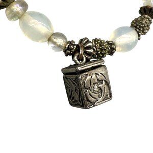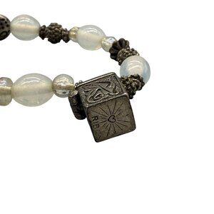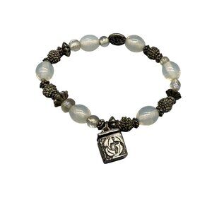 Vintage RIB Beaded Bracelet Silver Tone Charm Boho Elegance Retro