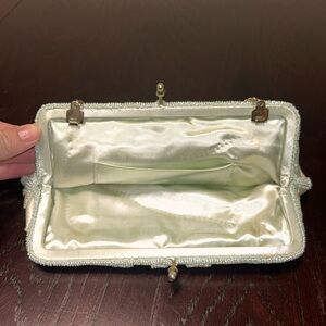 Vintage "RICHERE" Blue Beaded Evening Bag Silver Chain 1960's Hand Made in Japan