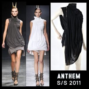 Featured on the Spring/Summer 2011 Runway, "Anthem", unique tunic style top features Rick Owens' signature "glam grunge" look with a touch of goth.
