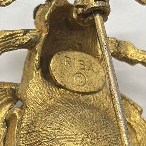 Vintage RISA (marked) gold tone bug brooch with a turquoise cabochon body
