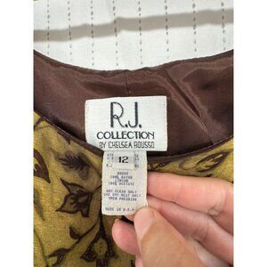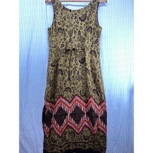 Vintage RJ Collection Dress Sz 12 Olive Green Brown Maxi Floral Boho FairyGrunge