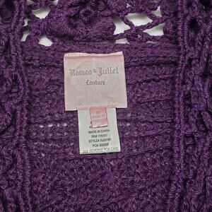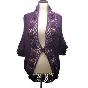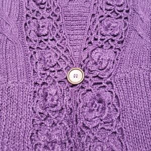 Vintage R&J Couture Boho Crochet Cardigan Sweater M Purple Floral Artisan Knit