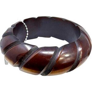 Vintage RJ Graziano Mahogany Carved Lucite Bangle Bracelet