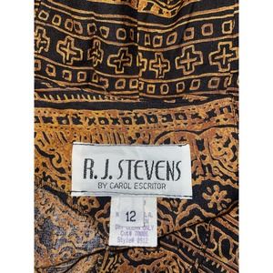 Vintage R.J. Stevens Brown Black Print Faux Wrap Midi Dress Size: 12