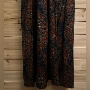 Dark Paisley Printed Deep V Neck Pleated Midi Dress With Statement Belt & Pockets. No Size Or Material Tag Measures Like A Medium