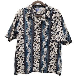 Vintage RJC Men's X-Large 100% Cotton Blue Black Shirt Casual Made in Hawaii USA