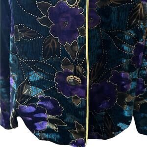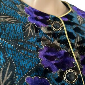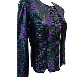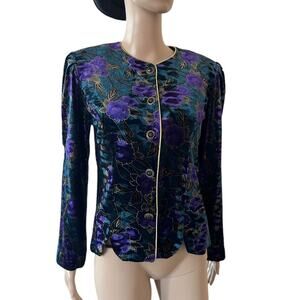 Stunning VTG 80s R&K Evening black velvet floral gold shimmer button down jacket size PM