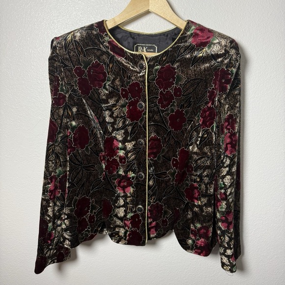 Vintage R&K Evenings Etched Floral Velvet Button-Down Blazer Size 12 Event. Condition is Pre-owned - Excellent. Shipped with USPS Ground Advantage.