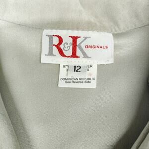 Vintage R&K Originals faux suede shirt jacket in beige with brown and black tribal screen printed motif. Women's size 12.
