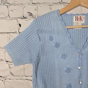 Vintage RK Originals Ramie Cotton Blue Short Sleeve Small Button Cardigan Size 6