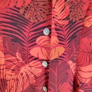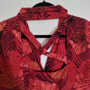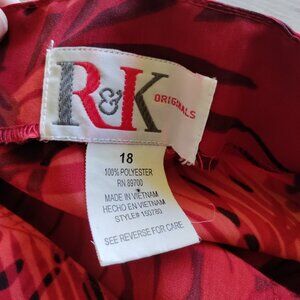 Vintage R&K Tropical Dress Red Sleeveless midi Button Front Size 18