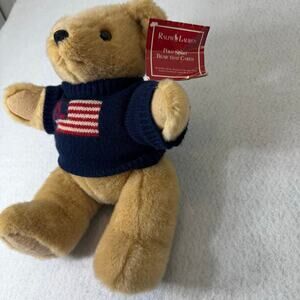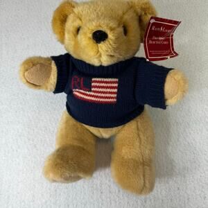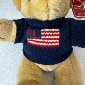 Vintage RL Ralph Lauren Polo Tan Plush Teddy Bear 1996 Jointed Flag Sweater
