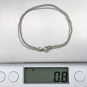 This vintage sterling silver curb link chain necklace by RL features a delicate 1.0mm design, measuring 18" in length. The curb link chain showcases fine craftsmanship and quality, making it perfect for wearing alone or pairing with a pendant. This timeless piece adds a touch of elegance and sophistication to any outfit.