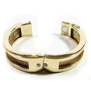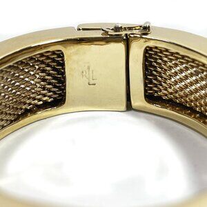 Vintage RLL RALPH LAUREN Bracelet Hinged Cuff Bangle Mesh Gold Tone Small