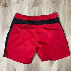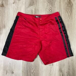 Vintage RLX Polo Sport Men’s 34 Red Nylon Swim Trunks Black Stripe Y2K Shorts