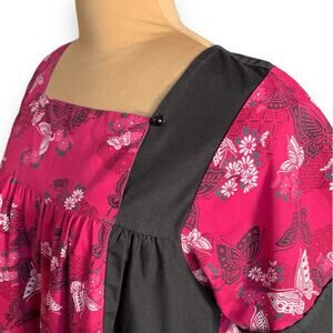 Vintage RM Made in Hawaii Pink Butterfly Dress Black Trim Square Neck Ruffle Hem
