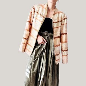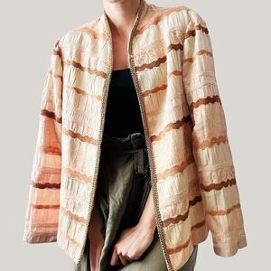 Vintage R&M Richards - Cream Tan Fall Boho Bohemian Stripes Blazer - Size 12