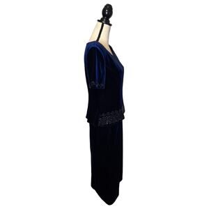 Vintage R&M Richards Formal Beaded Velvet Dress Womens Size 10P Navy Blue Classy