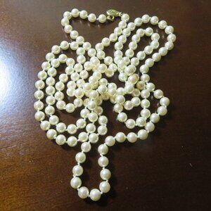 Vintage RMN 60" Opera Length Knotted Lustrous Faux Pearl Single Strand Necklace