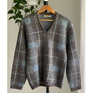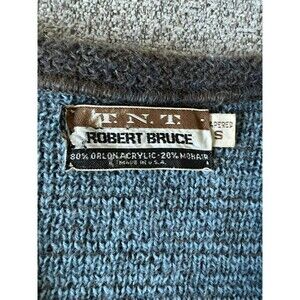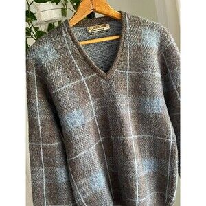 Vintage ROBERT BRUCE T.N.T. Mohair Blend Grunge Blue Plaid V-Neck Sweater Made in USA.