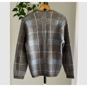 Vintage ROBERT BRUCE T.N.T. Mohair Blend Grunge Blue Plaid V-Neck Sweater Small