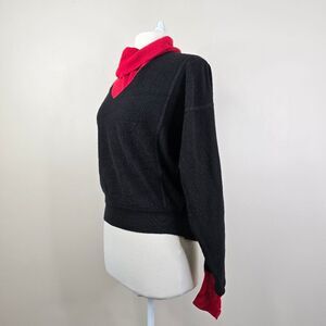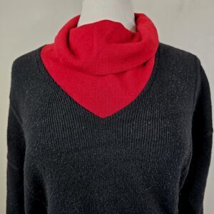 Vintage RODIER Paris Black and Red Wool Acrylic Blend Long Sleeve Cowl Neck Sweater Medium