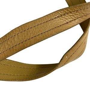 Minor creasing and wear on the sides and bottom. Handle trim has cracks. Interior fabric is pretty clean. One side has lighter coloring. Width: 13", Height: 9", Depth: 3.5", Strap drop: 9".
