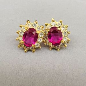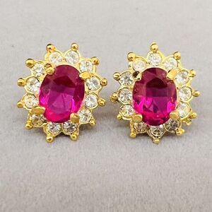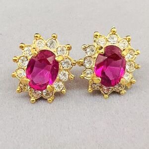 Absolutely BEAUTIFUL Vintage ROMAN Faux Pink Sapphire Ruby Rhinestones Stud Earrings Flower. Very nice Vintage Condition.