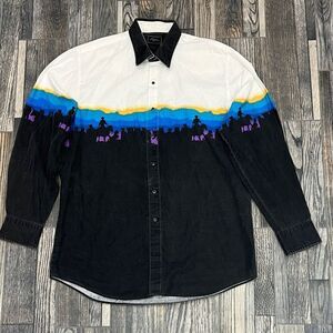 🔥🔥 Vintage ROPER Western Cowboy Wraparound Print LS Pearl Snap Shirt XL