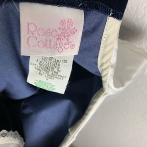 Vtg Rose Cottage bibbed Girls Navy Blue Velvet Dress with Pink Ribbon Roses