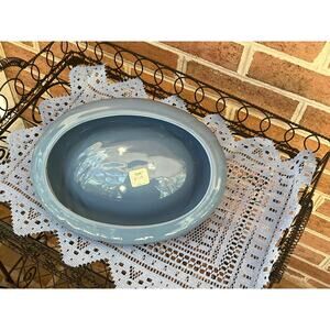 Vintage ROYAL HAEGAR Console Bowl Blue 1984 Art Deco Rolled Rim