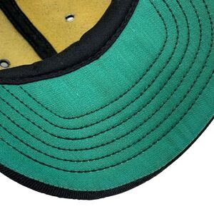 Missing one snap and minor water damage to the bill. Has been cleaned and sanitized. See photos.
