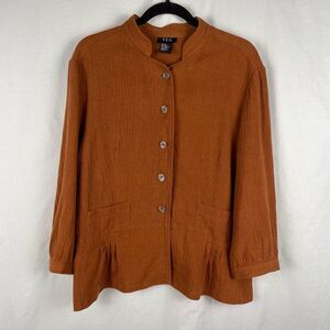 Vintage R.Q.T. Burnt Orange Linen Blend Button Down Blouse - Women’s XL