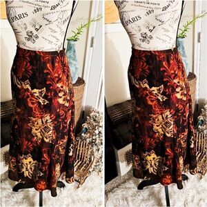 Vintage R.Q.T Rustic Floral Print Midi Skirt