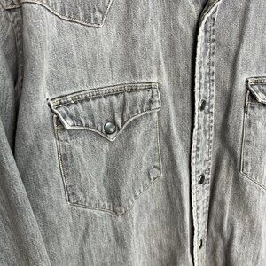 Vintage RRL Ralph Lauren Mens Gray Western Denim Shirt Size Medium Pearl Snap