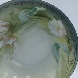 Gorgeous vintage RS Germany porcelain bowl featuring tulips. The bowl is very light weight and almost translucent. RS Germany mark was used by the Tillowiz Germany factory of Reinhold Schlegelmilch circa 1914-1945. Pre-owned, Good condition.