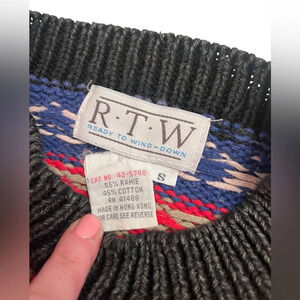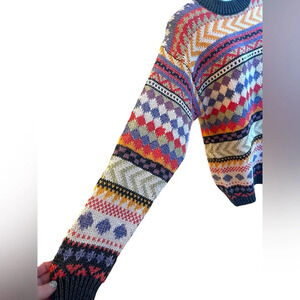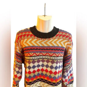 Vintage RTW Sweater Fair Isle Blue Red Colorful Striped Diamond 80s