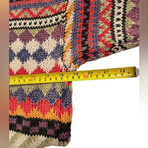 Vintage RTW Sweater Fair Isle Blue Red Colorful Striped Diamond 80s Mens Sz S